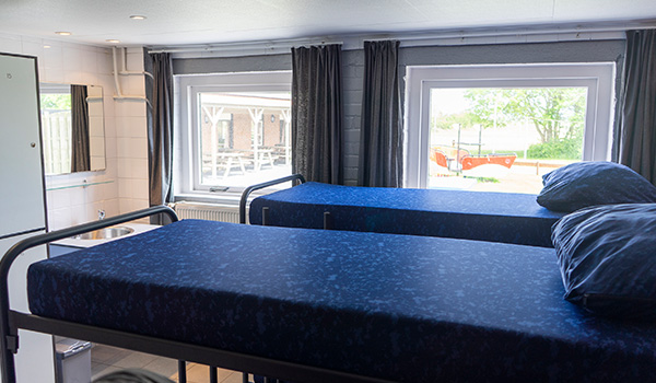 Er zijn 8 slaapkamers met allemaal 6 of 8 slaapplaatsen (stapelbedden) Er zijn 5 wc's en 5 douches.