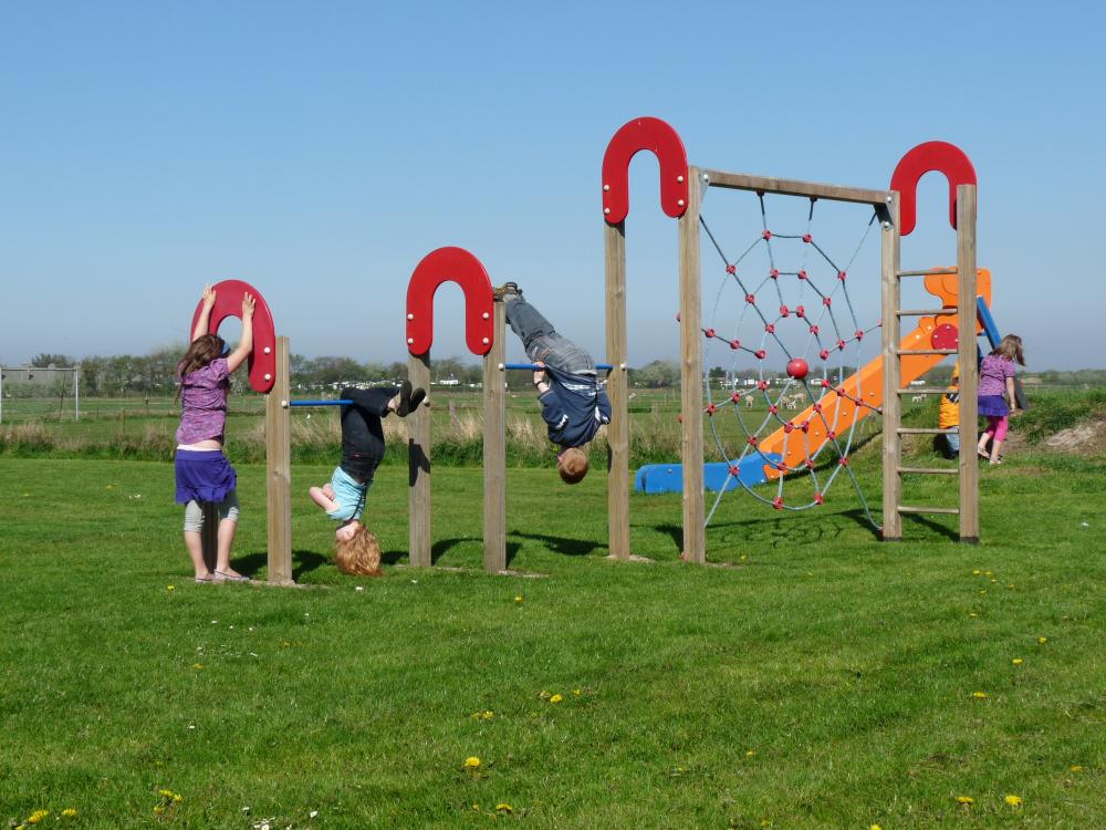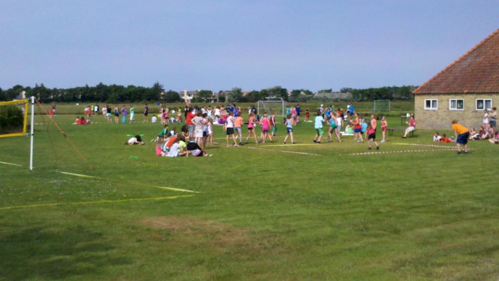 - Een groot privéspeelveld van 6000 m² met professionele voetbaldoelen, een volleybalveld en diverse speeltoestellen.